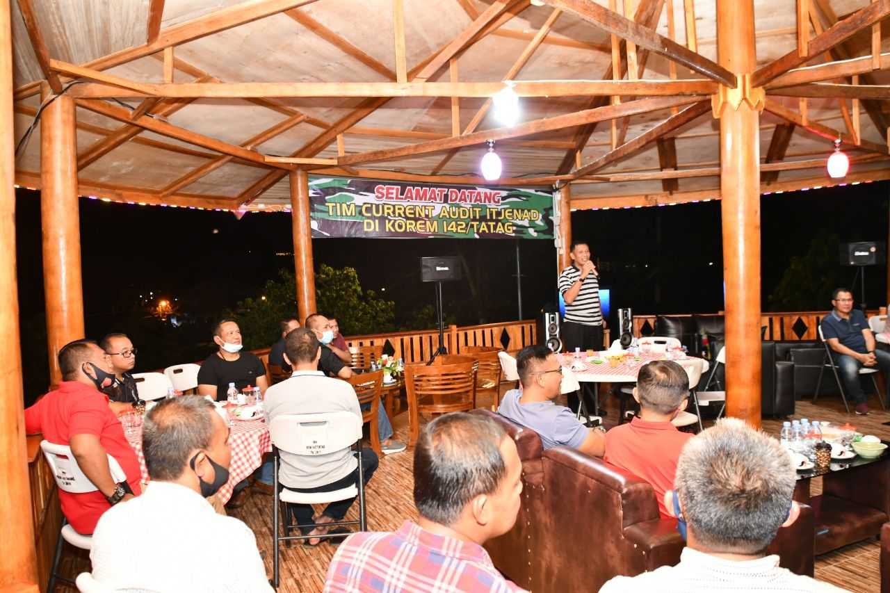 Suasana kebersamaan terlihat begitu kental di malam ramah-tamah rombongan Tim Current Audit Itjenad bersama Danrem 142/Tatag dan seluruh Perwira Staf dan Balak Aju Rem 142/Tatag yang dilaksanakan di Baruga Korem 142/Tatag,Jumat (16/10/2020) malam.