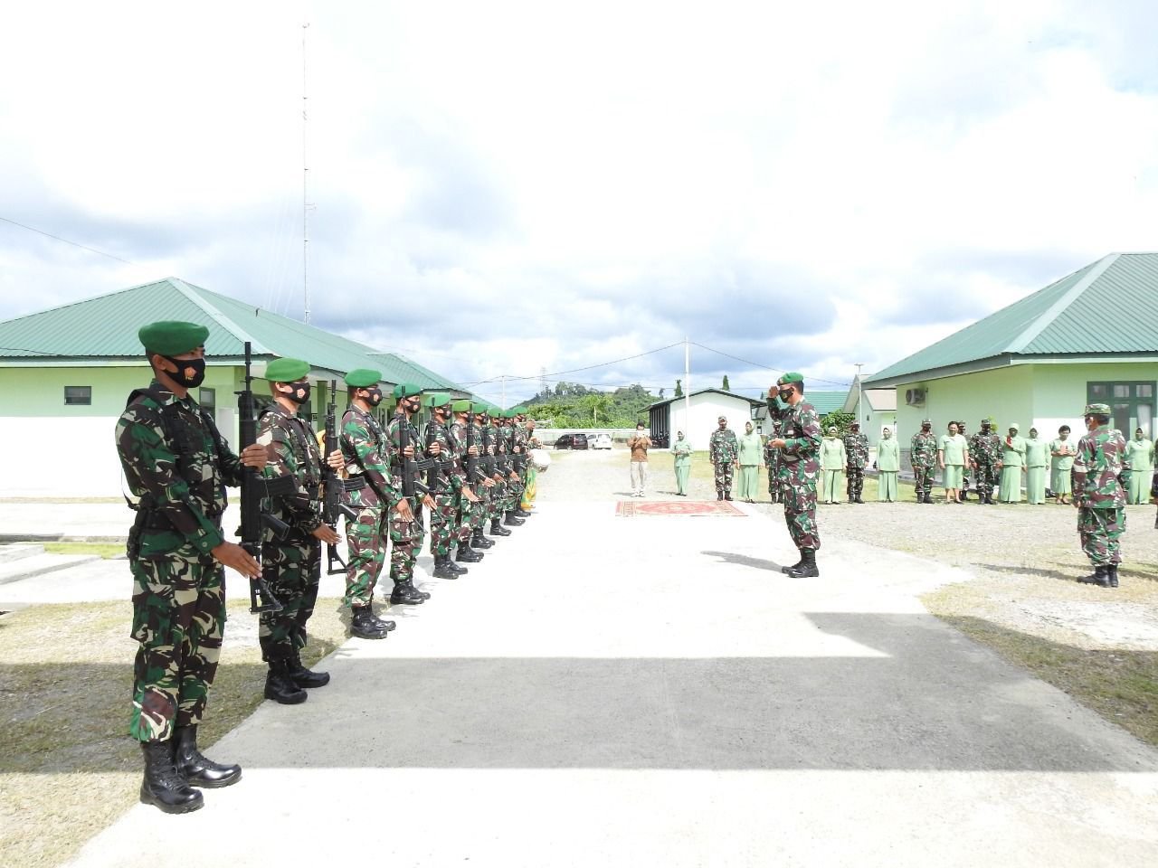 Danrem 142/Tatag Brigjen TNI Firman Dahlan, S.I.P bersama Ketua Persit KCK Koorcabrem 142 Ny. Sari Firman Dahlan kunjungan kerja ke Kodim 1427/Pasangkayu, Senin (19/10/2020).