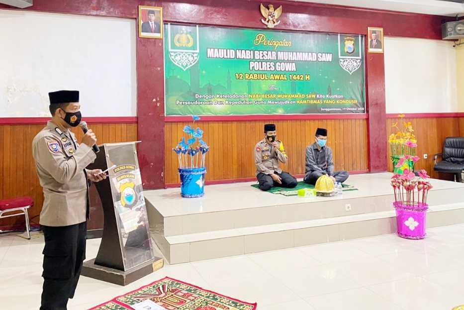 Polres Gowa menggelar peringatan Maulid Nabi Besar Muhammad SAW 1442 H / 2020 M, bertempat di Aula Endra Dharmalaksana pada Senin (19/10/2020) pagi.