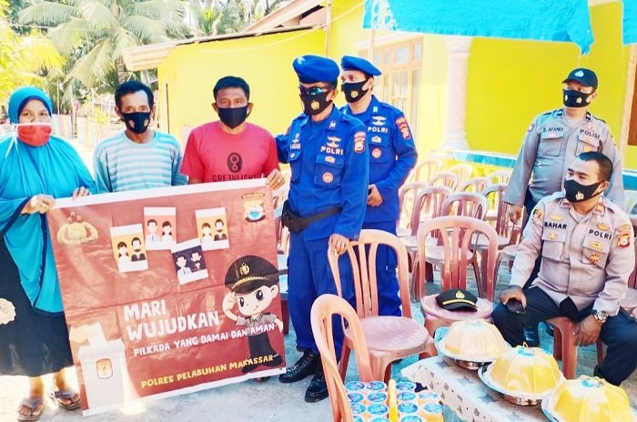 Sebagai upaya menjaga kamtibmas di wilayah hukum Polres Pelabuhan Makassar khususnya yang berada di pulau, personel Satpolair memberikan sosialisasi Pilkada Damai kepada masyarakat Kepulauan Sangkarrang, Makassar, Sabtu (24/10/2020).