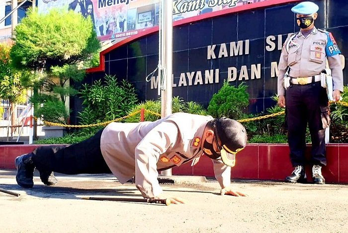 Menutup arahan pada apel pagi tadi Kapolres Gowa melakukan Push Up di depan seluruh anggota atas kekhilafan dan kekurangan selama kepemimpinannya sekaligus memohon pamit dan doa dari seluruh personel. (*dion)