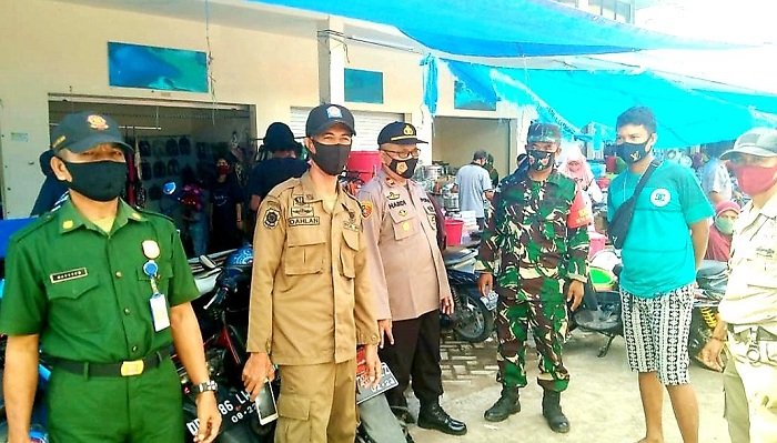 Dalam kegiatan operasi tersebut petugas gabungan memberikan imbauan kepada pedagang dan pengunjung agar wajib menggunakan masker bila keluar rumah.