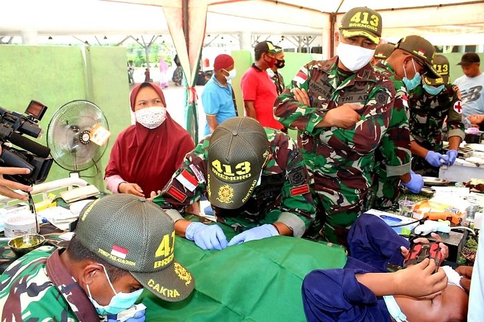 "Hari ini peserta khitanan massal berjumlah tiga puluh satu orang. Bulan Agustus lalu hanya tujuh belas orang. Ya bertambah hampir dua kali lipat," tutur Dokter Satgas Yonif MR 413 Kostrad Lettu Ckm Andrew Agung sebagai koordinator khitanan massal.