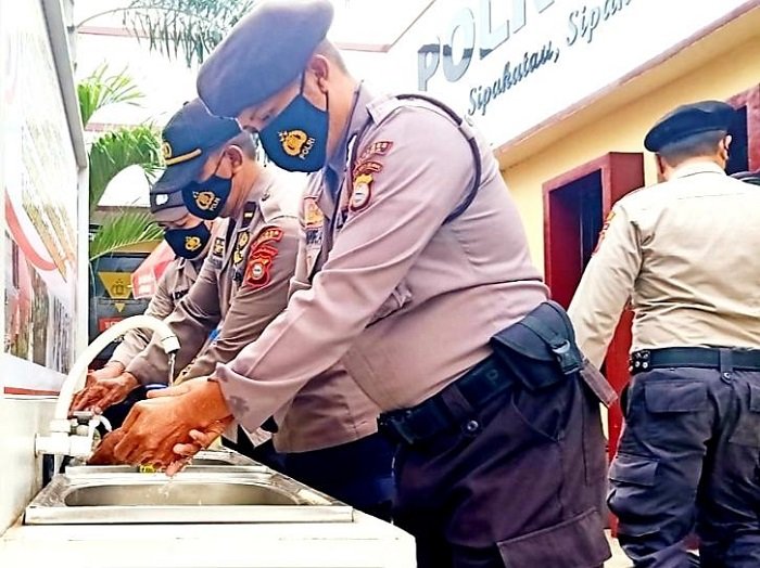 Untuk meningkatkan kedisiplinan personel dalam menerapkan protokol kesehatan, Polres Gowa terus melakukan pemeriksaan suhu badan dan wajib mencuci tangan sebelum memasuki kantor Polres Gowa.