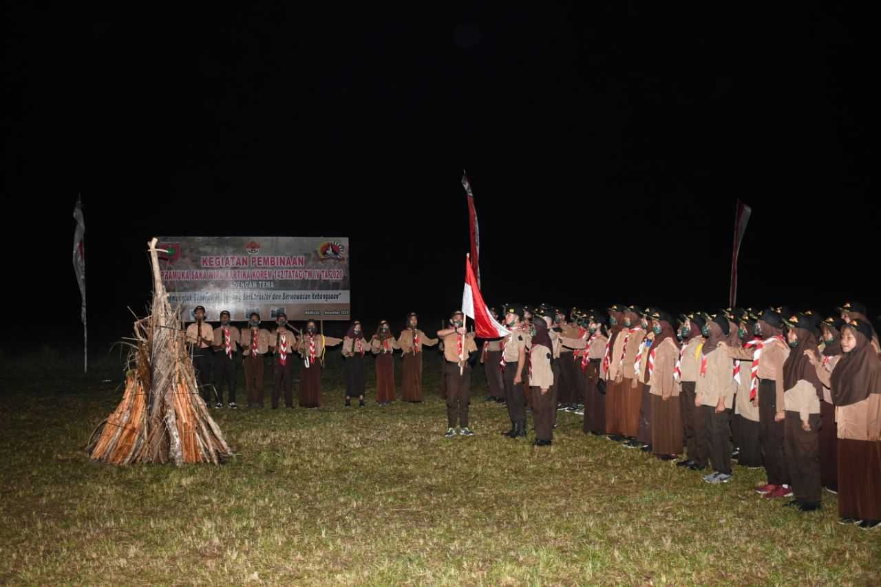 Upacara Pengukuhan Pramuka Saka Wira Kartika Korem 142/Tatag oleh Danrem 142/Tatag Brigjen TNI Firman Dahlan, S.I.P berlangsung di lapangan tembak Korem 142/Tatag, Sabtu (7/11/2020) malam, sekaligus dilaksanakan Persami.