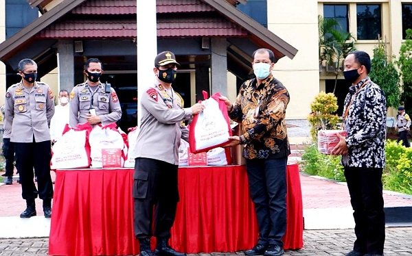 Kapolda Sulsel Irjen Pol Drs. Merdisyam menyerahkan ribuan paket sembako bantuan dari Presiden RI Joko Widodo untuk masyarakat kota Makassar