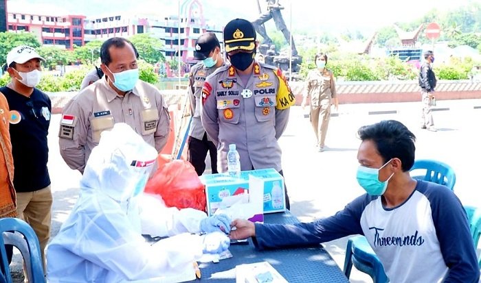 Kegiatan Ops Yustisi yang dilakukan secara terpadu ini meliputi penghentian kendaraan roda 2 dan roda 4, pembagian masker medis, dan rapid test secara gratis bagi masyarakat yang disediakan oleh Satgas Covid-19 Tana Toraja. Dari lokasi kegiatan, ada 5 warga yang di rapid test.