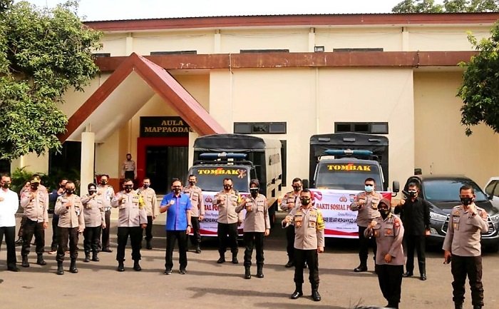 Diketahui dalam baksos ini didistribusikan sebanyak 300 paket sembako hasil sumbangan personel Polda Sulsel yang selanjutnya akan didistribusikan kepada masyarakat terdampak Covid-19 yaitu PHL, Korsik, Cleaning Service, Lintas Agama, dan Kaum Duafa.