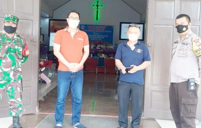 Guna memberikan rasa aman antar umat beragama, Bhabinkamtibmas Kelurahan Romanglompoa Polsek Bontomarannu Polres Gowa Bripka Syahrir bersama Babinsa 03 Bontomarannu Pelda Rahman Sidik melakukan pengamanan di Gereja Oikumene bertempat di Lingkungan Romanglompoa, Kelurahan Romanglompoa, Kecamatan Bontomarannu, Rabu (25/11/2020) siang.