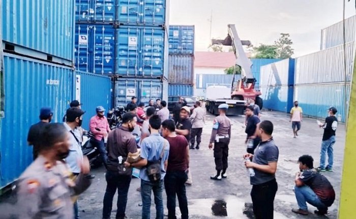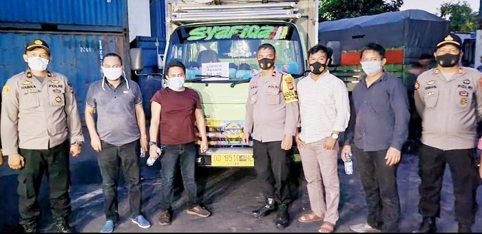 Personel Polres Pelabuhan Makassar yang tergabung dalam Operasi Mantap Praja Pengamanan Pilkada Serentak 2020 menggelar pengamanan kedatangan Logistik Pilkada berupa Kertas Suara di Pelabuhan Peti Kemas Soekarno-Hatta Makassar.