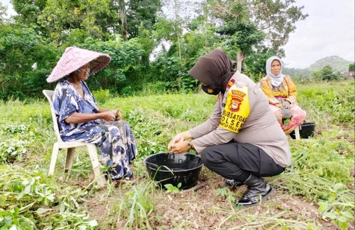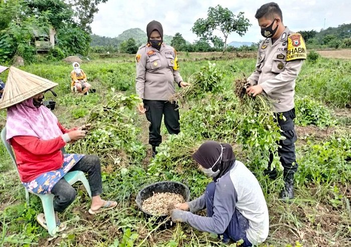 Dalam meningkatkan ketahanan pangan masyarakat di tengah pandemi Covid-19, Kapolsek Parangloe Polres Gowa Iptu Kasmawati, S.Sos mendatangi dan memberikan motivasi masyarakat di Kampung Kabbasa, Kelurahan Lanna, Kecamatan Parangloe, Kabupaten Gowa saat melaksanakan panen raya kacang tanah.