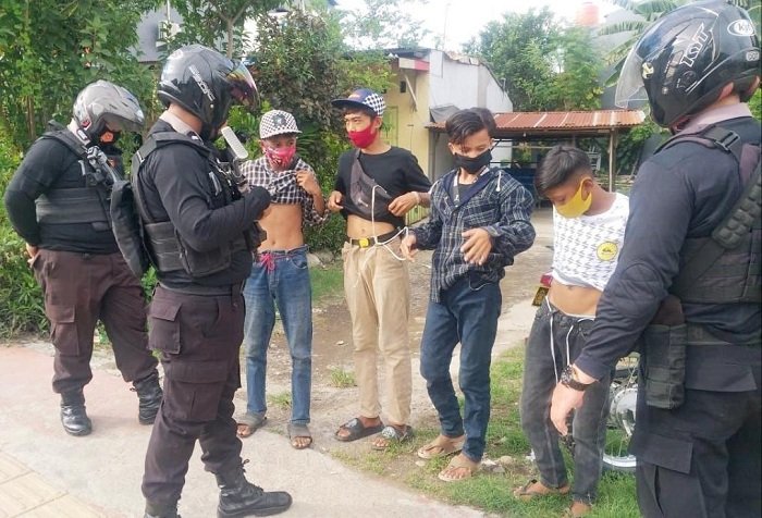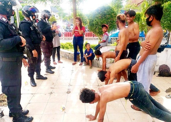"Kita lakukan pemeriksan dan tidak menemukan benda tajam dan obat-obatan. Kemudian kita menyuruhnya kembali ke rumah masing-masing dan bagi mereka yang tidak menggunakan masker dilakukan tindakan sanksi sosial berupa tindakan fisik dengan cara push-up," terangnya.