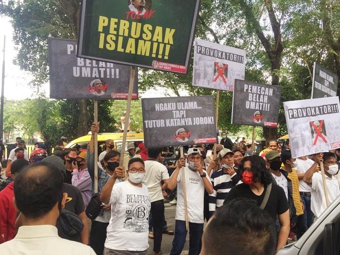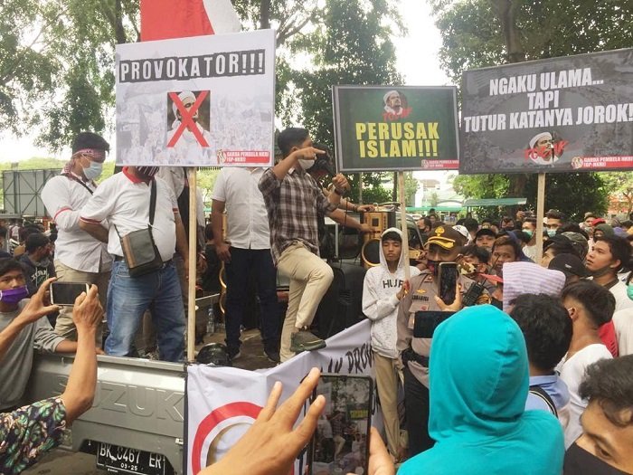 “Dalam aksinya, massa dari GPP-NKRI tiba di kantor DPRD Sumut menggunakan satu unit mobil Komando, 12 unit mobil angkot dan sepeda motor, pengeras suara serta membawa spanduk yang bertuliskan tuntutan," jelas Waka Polrestabes Medan.