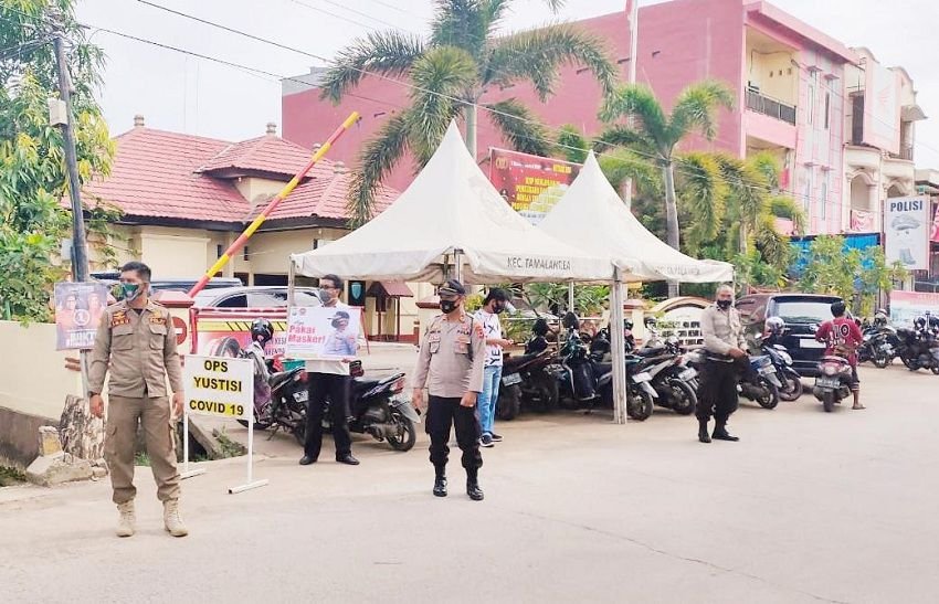 Petugas gabungan Polsek Tamalanrea Polrestabes Makassar dan Satpol PP rutin melaksanakan Operasi Yustisi dalam rangka pendisiplinan protokol kesehatan kepada warga masyarakat.