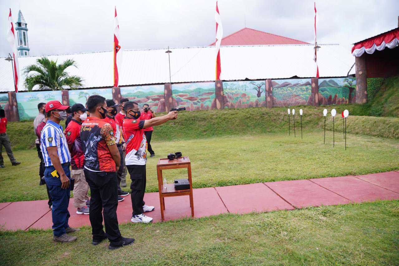 Wagub Sulsel, Andi Sudirman Sulaiman terlihat berpartisipasi dalam menembak bersama Wakapolda Sulsel.