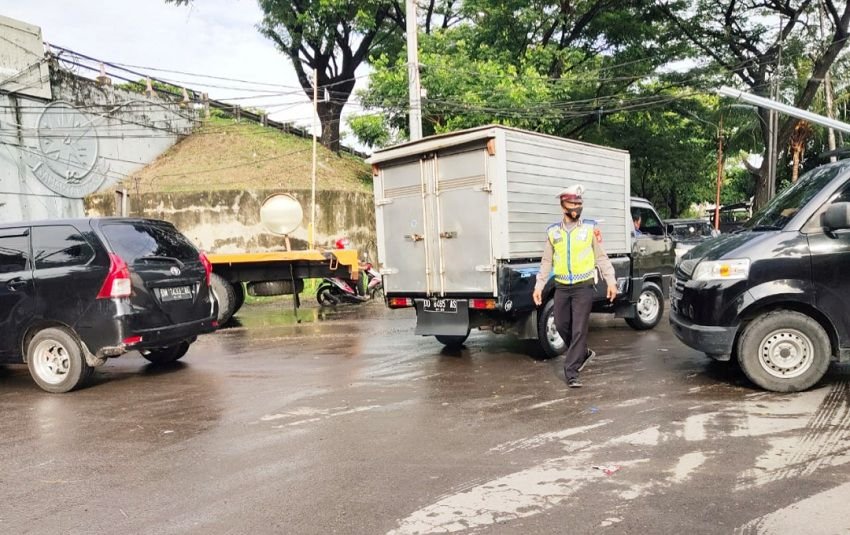 Memberikan pelayanan prima kepada masyarakat, Unit Satlantas Polsek Ujung Tanah melakukan pengaturan lalu lintas kendaraan untuk mengurai kemacetan, Kamis (03/12/2020).