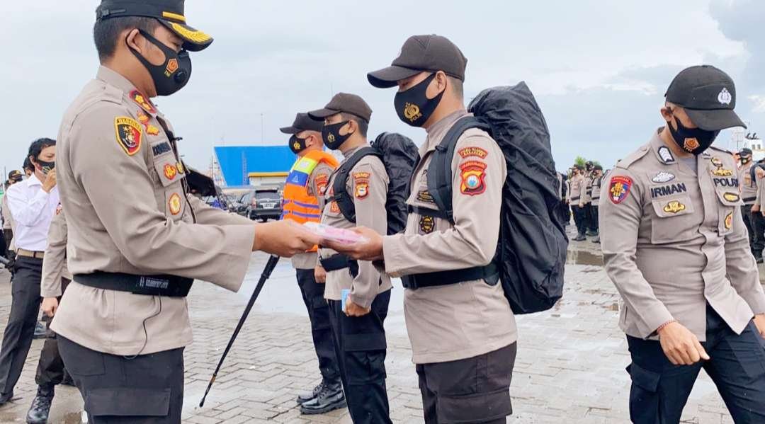 Serpas (pergeseran pasukan) pengamanan Pilkada Serentak 2020, Seluruh personel Polres Pelabuhan Makassar yang bertugas pengamanan TPS mendapatkan bekal APD (Alat Pelindung Diri) serta suplemen multi vitamin.