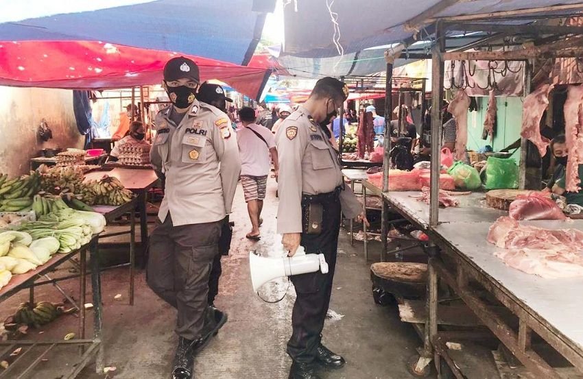 "Personel Polres Pelabuhan Makassar rutin blusukan ke pasar-pasar untuk mengingatkan warga soal protokol kesehatan. Seperti selalu menggunakan masker, sering-sering cuci tangan dengan menggunakan sabun dan menyiapkan Hand Sanitizer, jaga jarak sosial serta menjaga kebersihan diri dan lingkungan karena hal ini merupakan salah satu bentuk pencegahan penyebaran virus Corona atau Covid-19,” kata Kabag Ops Kompol Gani.