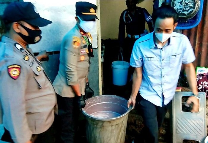 Personel Polsek Tinggimoncong Polres Gowa yang dipimpin langsung Kapolsek Tinggimoncong Iptu Hasan Fadhlyh, SH melaksanakan razia minuman keras (miras) jenis ballo' di wilayah binaannya, Kamis (17/12/2020).