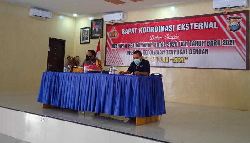 Jelang perayaan Natal dan Tahun Baru 2021, Polisi Resort Luwu Utara (Lutra), Sulawesi Selatan (Sulsel) melaksanakan rapat koordinasi (rakor) dengan instansi terkait Operasi Lilin Agung 2020, di Aula Mapolres Lutra, Jumat (18/12/2020).