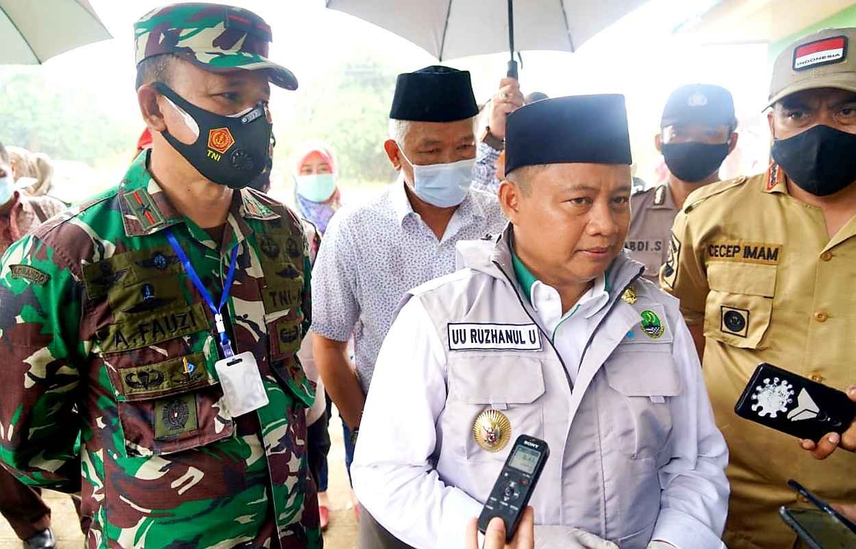 Bersama Wakil Gubernur (Wagub) Jawa Barat (Jabar) Uu Ruzhanul Ulum, Danrem 061/SK Brigjen TNI Achmad Fauzi mengunjungi Azzikra yang berada di Desa Cipambuan, Kecamatan Babakan Madang, Kabupaten Bogor, Minggu (20/12/ 2020 ). Kunjungan Wagub beserta Danrem dalam rangka meninjau pelaksanaan Pemilihan Kepala Desa Serentak Tahun 2020.