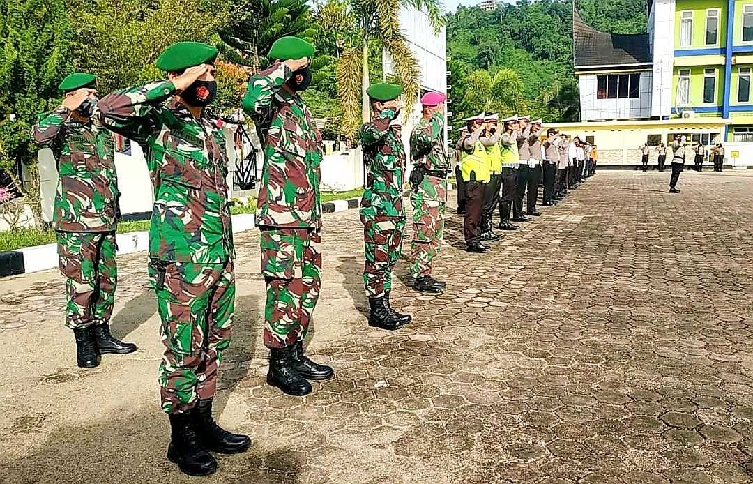 Komandan Komando Distrik Militer (Dandim) 0311 Pessel menghadiri apel gelar pasukan Operasi Lilin Jaya Tahun 2020, bertempat di halaman kantor Mapolres Pessel Jln. Jend. Sudirman, Painan, Senin (21/12/2020).