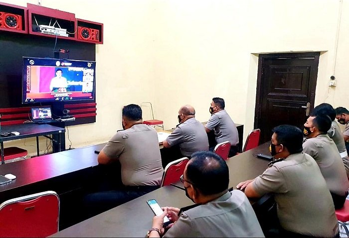 Wakapolres Gowa Kompol Abu Bakar bersama operator Polres Gowa menghadiri kegiatan penerimaan penghargaan predikat Zona Integritas Wilayah Birokrasi Bersih Melayani (ZI-WBBM) dari Kemenpan RB pada Senin (21/12/2020).