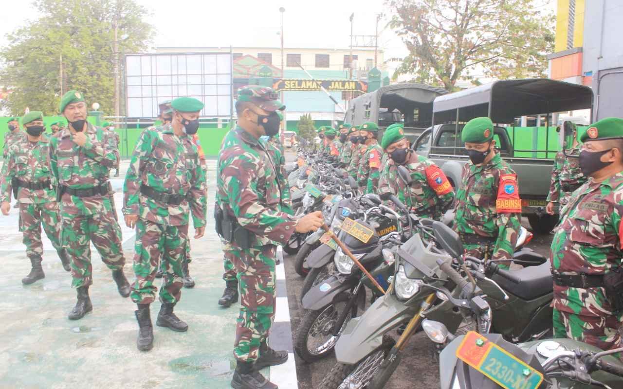 Setelah apel gelar pasukan selesai, Dandim beserta unsur Perwira Staf dan Danramil melakukan pengecekan kesiapan Ranmor yang akan digunakan para anggota dalam pengamanan nantinya. (*)