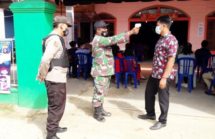 Selanjutnya personel Koramil Tumbang Miri bersama Polsek Kahut dengan sikap humanis melakukan imbauan bagi segenap jemaat yang hadir, agar mematuhi protokol kesehatan yaitu mencuci tangan, memakai masker, melakukan cek suhu tubuh sebelum masuk ke gereja serta menjaga jarak. (*)