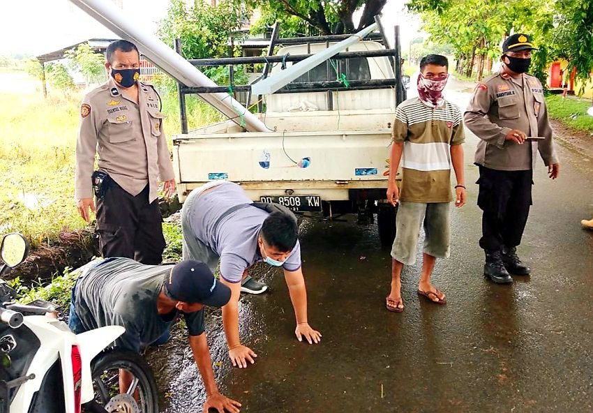 Nampak AKP Rusdi bersama Iptu Abdullah, SH, MH dan Kanitnya aktif memberikan edukasi kepada masyarakat dan juga teguran bagi warga pengendara yang tidak patuhi protokol kesehatan dan Kapolsek Barombong juga memberikan teguran keras serta hukuman fisik.