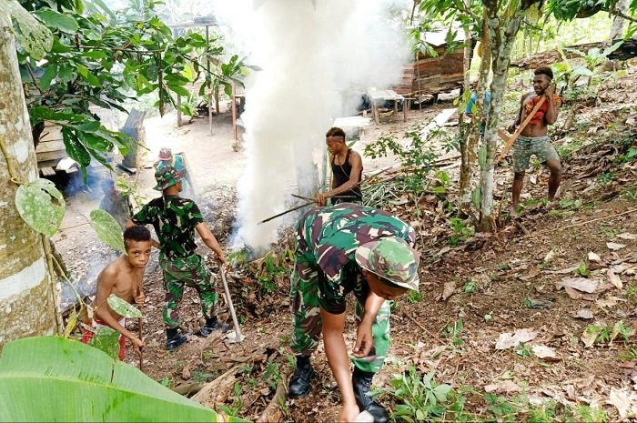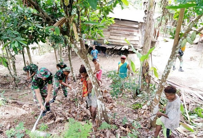 Komandan Pos (Danpos) Karang Sertu Dexa Apriyanto menyampaikan, dengan adanya kegiatan pembersihan secara rutin diharapkan dapat menjaga kebersihan lingkungan dan kesehatan masyarakat. Dengan begitu, masyarakat serta merta dapat menjaga kesehatan. Terutama pelaksanaan karya bhakti kali ini dilaksanakan di sekitar rumah masyarakat Kampung Yuwainda. “Kalau lingkungan bersih, pasti bisa dikategorikan masyarakat kita sehat,” terangnya.