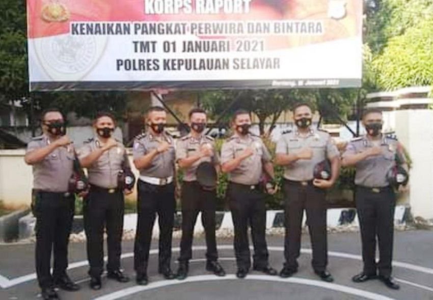 Upacara Korps Rapot kenaikan pangkat setingkat lebih tinggi terhadap sebanyak 39 orang personel polres Kepulauan Selayar dilaksanakan di Lapangan Apel Mapolres Kepulauan Selayar, Jumat (01/01/2021).
