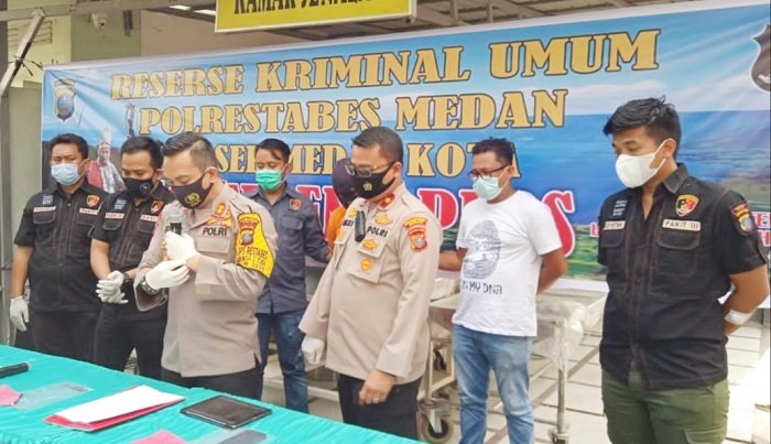 "Kemudian petugas bertemu dengan pelaku AR di jalan dan diamankan, setelah diinterogasi, pelaku mengakui telah berulang kali melakukan pencurian di beberapa TKP wilayah hukum Polsek Medan Kota," kata Wakapolrestabes Medan AKBP Irsan Sinuhaji saat memimpin Konferensi Pers bertempat di depan Kamar Jenazah RS. Bhayangkara TK ll Medan, Jumat (08/01/2021).