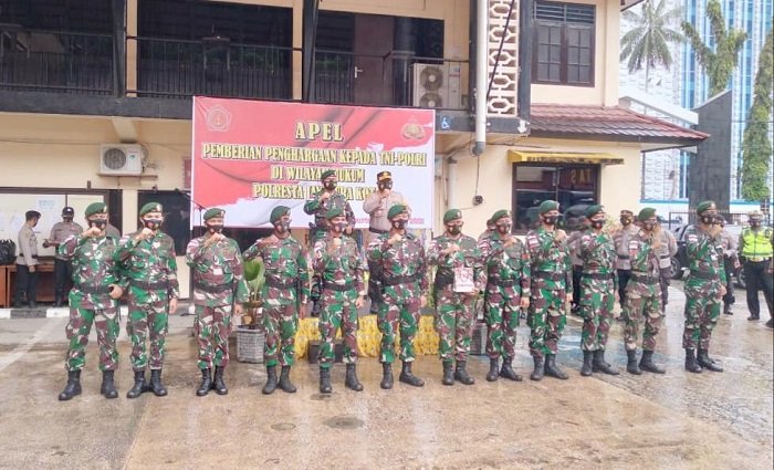 "Saya berpesan kepada para peserta apel sekalian untuk selalu menjaga sinergitas TNI-Polri dan jangan pernah patah semangat dalam menjalankan tugas serta tingkatkan prestasi dengan tetap menjaga kewaspadaan dalam setiap bertugas,” tambahnya.