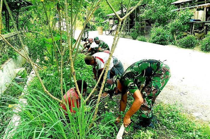 Dijelaskan lebih lanjut oleh Komandan Pos Karang Sertu Dexa Apriyanto bahwa kegiatan membantu masyarakat binaan Kampung Yuwainda membersihkan sekitaran rumah Ini sudah sering dilaksanakan oleh anggota Pos Karang, juga bertujuan mengajak masyarakat binaan Pos Karang untuk hidup lebih bersih lagi.