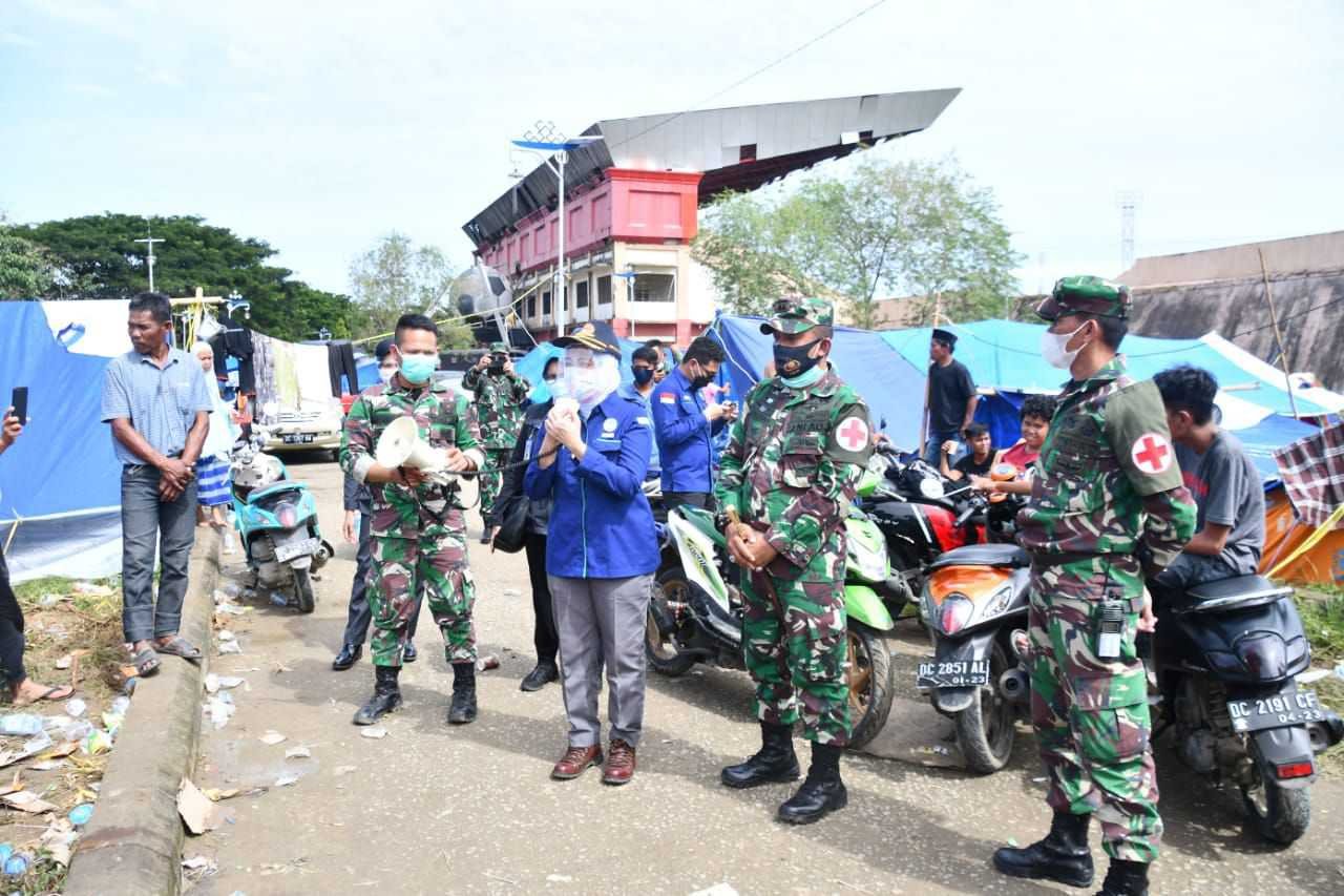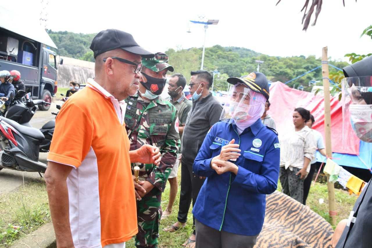 Kepala Badan Meteorologi Klimatologi dan Geofisika (BMKG), Prof.Ir. Dwikorita Karnawati,M.Sc.Phd mendatangi tempat-tempat pengungsian bencana alam di Mamuju Sulawesi Barat didampingi Kolonel Kav Abd Haris, Pa Ahli Hukum dan Humaniter Kodam XIV/Hasanuddin dan Letkol Ckm. Asnawi, Senin (18/1/2021).