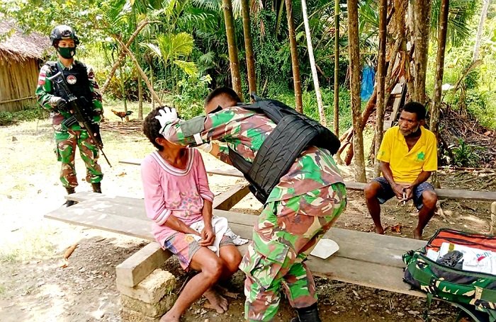 Pada kesempatan tersebut Pos Ampas memberikan pengobatan kepada Mama Ageta (48) di Kampung Ampas, Distrik Waris, Kabupaten Keerom, Provinsi Papua, Selasa (19/01/2021).