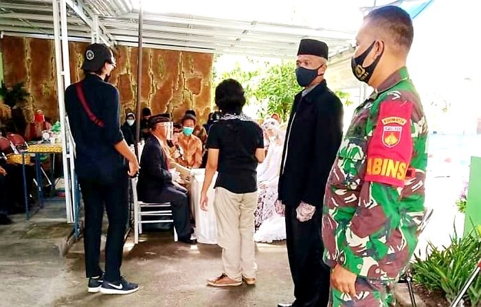 “Kehadiran kami disini intinya bukan melarang, (tapi) dibatasi jumlah peserta dan waktunya. Hanya ada acara akad saja, untuk acara resepsi dapat dilakukan setelah pandemi ini berakhir," ungkap Serma Ari Yuwono. (Agus Kemplu)