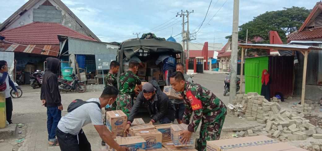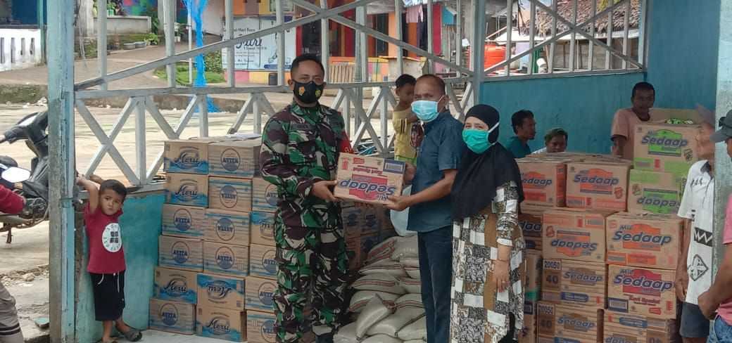 Babinsa Koramil 1418-01 Kodim 1418/Mamuju, Sertu Setyo Budi membawa bantuan sembako kepada masyarakat di Pulau Karampuang Mamuju, Jumat (22/1/2021).