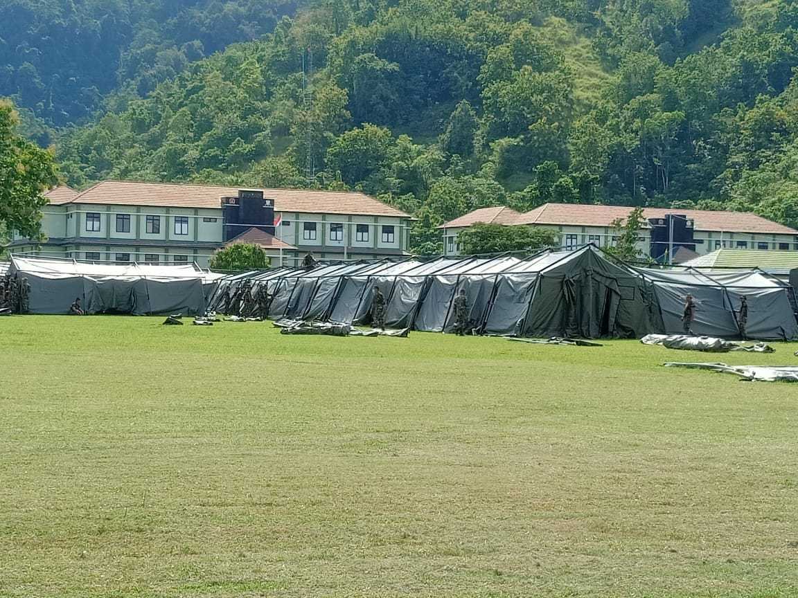 Salah satunya Rumah Sakit Lapangan, lengkap dengan fasilitas kesehatan dan personel bantuan medis Batalyon Kesehatan Divisi Infanteri 2 Kostrad.