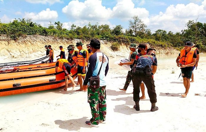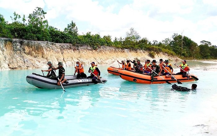 Tingkatkan kesiapsiagaan terhadap bencana, Kodim 1014/Pangkalan Bun (Pbn) menggelar simulasi penanganan bencana banjir di danau, yang berlokasi di Jalan Pasir Panjang, Desa Sei Tendang, Kecamatan Arut Selatan, Kabupaten Kotawaringin Barat (Kobar), kemarin.