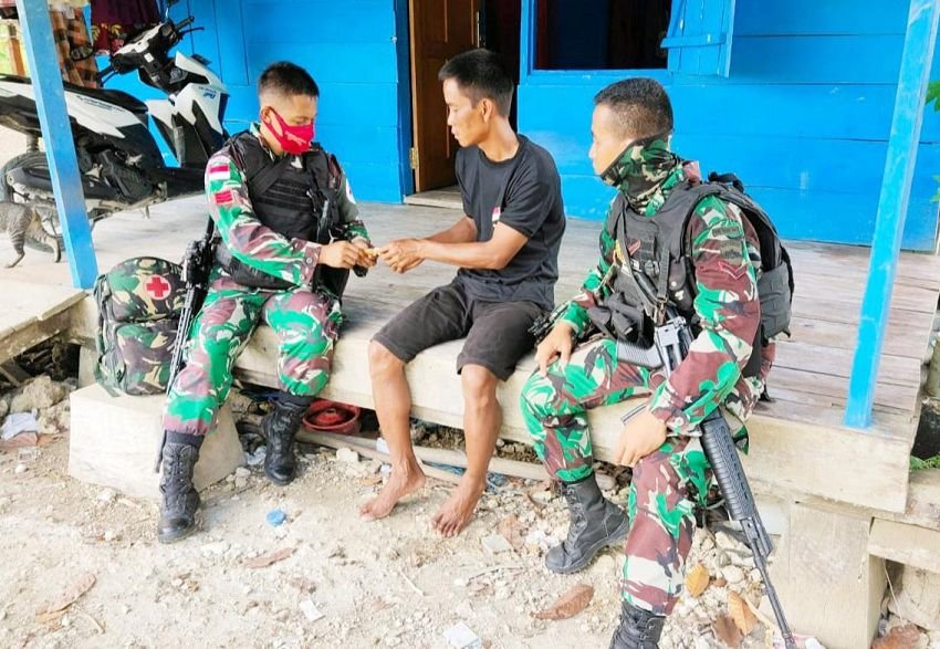 Kesempatan kali ini Pos Arso 13 Satgas Pamtas RI-PNG Yonif Raider 100/PS gelar kegiatan pelayanan kesehatan keliling di Kampung Naramben, Distrik Skanto, Kabupaten Keerom, Provinsi Papua, Rabu (27/01/2021).
