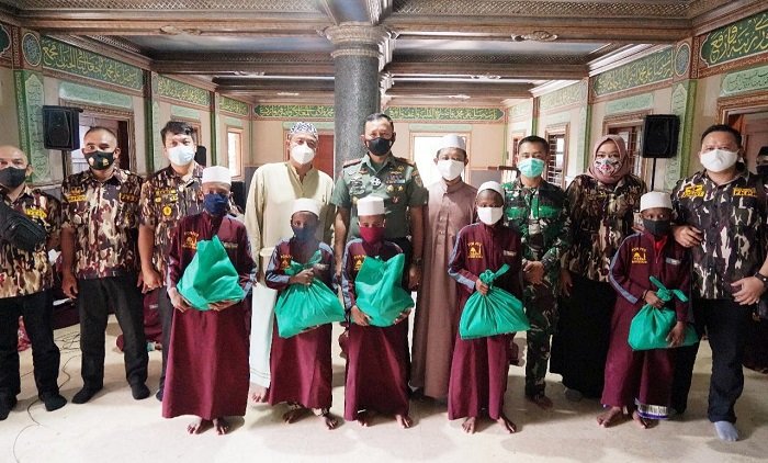 Usai melaksanakan kegiatan tersebut, Danrem beserta rombongan langsung memberikan bantuan berupa 200 paket sembako, 200 hand sanitizer dan 1.200 masker (200 masker loreng dan 1.000 masker kesehatan) serta bantuan lainnya untuk para santri yang diberikan secara simbolis.