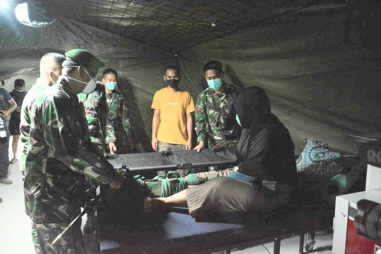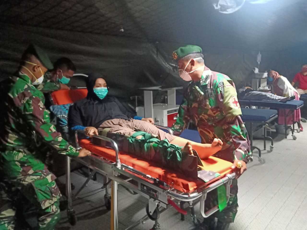 Danyon Kes 2/Ybh/2 Kostrad, Letkol Ckm dr. Ayiq Mahmud, Sp.OT (K) Spine, Minggu (14/2/2021), menjemput Ny.Dahniar (27) di Desa Patti, Kecamatan Simboro, Kabupaten Mamuju, Sulawesi Barat (Sulbar). Selanjutnya diangkut mobil ambulance milik TNI AD ke Rumah Sakit (RS) Lapangan TNI AD.