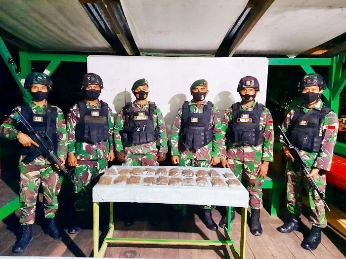 "Berdasarkan laporan yang saya terima dari Kapten Inf Hervin Rahadian Jannat, bahwa dua puluh paket Ganja tersebut ditemukan oleh salah satu anggota yang ikut dalam kegiatan sweeping bernama Kopda Chundori saat melakukan penyisiran di luar area pemeriksaan kendaraan baik roda dua maupun roda empat," ungkap Dansatgas.