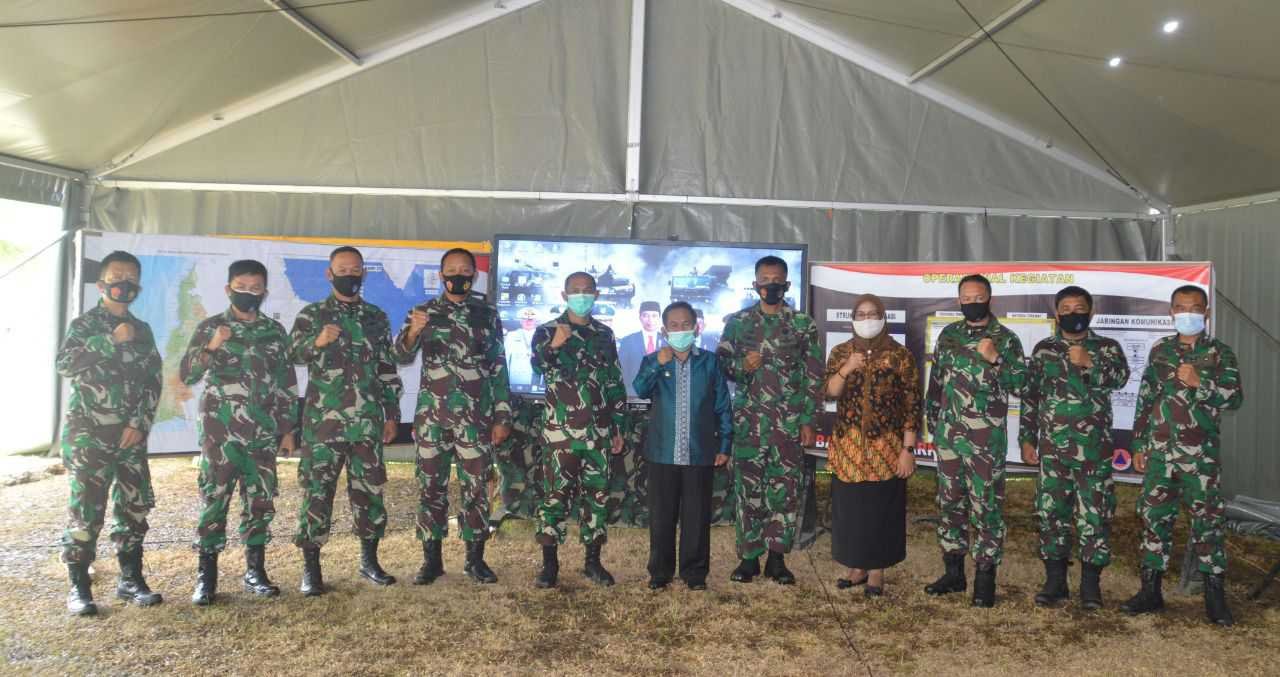 Bupati Majene, H.Lukman, S.Pd.,M.Pd bersama Kasrem 142/Tatag menghadiri Rakornis TMMD 110 TA 2021 secara virtual di Korem 142/Tatag, Kamis (18/2/2021).