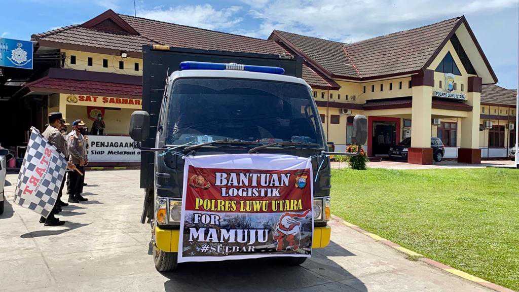 Bantuan peduli kasih dari Polres Lutra ke Mamuju dan Majene dengan menggunakan tiga unit kendaraan dinas, dan mengangkut bantuan logistik berupa beras 71 karung, paketan sembako dan kebutuhan pokok 20 karton, 140 karton mie instan dan air mineral 50 dos serta gula, minyak goreng dan lain lainnya.