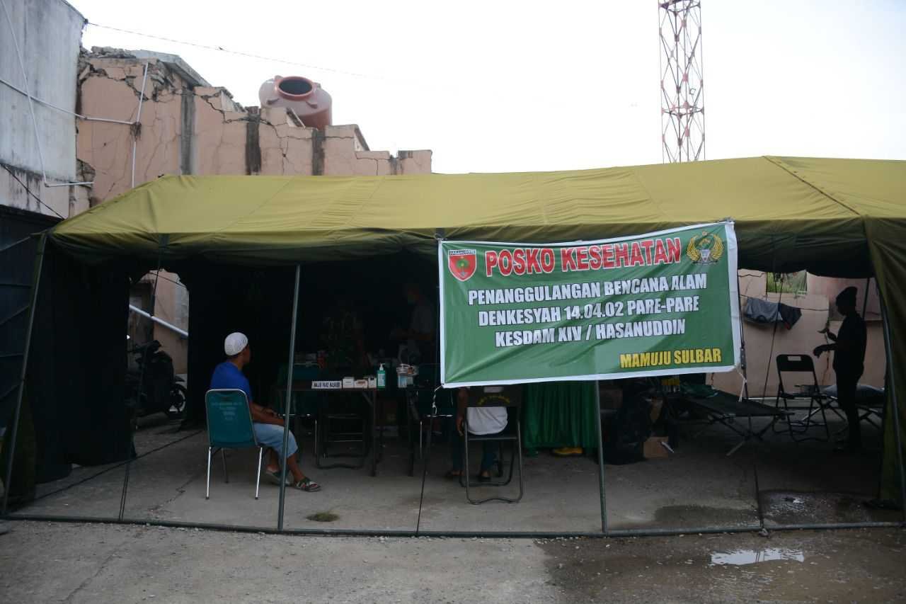 Posko Kesehatan Denkesyah 14.04.02 Parepare yang sampai saat ini berada di pengungsian Stadion Manakarra Mamuju masih didatangi warga pengungsi untuk melakukan pengobatan. Namun, berbeda dengan hari-hari sebelumnya, warga yang datang berobat mulai berkurang.