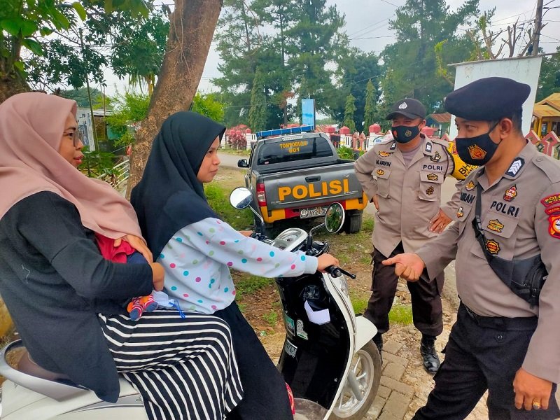 Dalam pelaksanaan operasi yustisi penegakan protokol kesehatan, masih ada masyarakat yang ditemukan tidak menggunakan masker, olehnya itu para pelanggar tersebut di berikan teguran lisan dan tindakan fisik berupa push up sebagai efek jera.