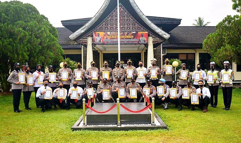 Kapolres Payakumbuh AKBP Alex Prawira memberikan penghargaan kepada 28 orang personel Polres Payakumbuh berprestasi yang berperan aktif dalam tim pembangunan Zona Integritas Menuju WBK Tahun 2020 Polres Payakumbuh bertempat di Mapolres Payakumbuh, Senin (01/03/2021). "Penghargaan yang diberikan Kapolres Payakumbuh ini, berdasarkan penilaian atas dedikasi dan berperan aktif dalam tim pembangunan Zona Integritas sehingga Polres Payakumbuh dapat meraih predikat WBK pada akhir bulan desember tahun 2020 lalu dari Kemenpan RB RI, sehingga dapat dijadikan teladan bagi anggota Polri yang lain," ujar Kapolres Payakumbuh AKBP Alex Prawira.